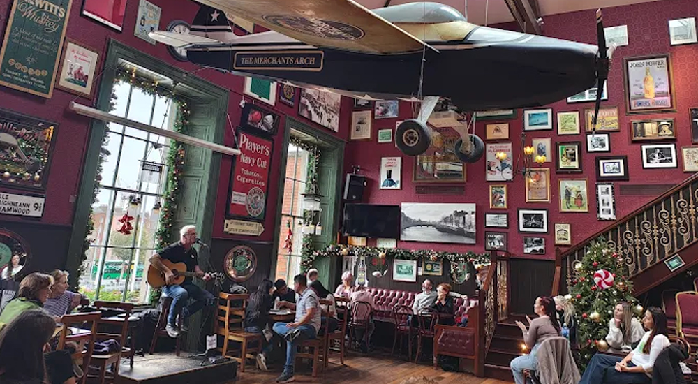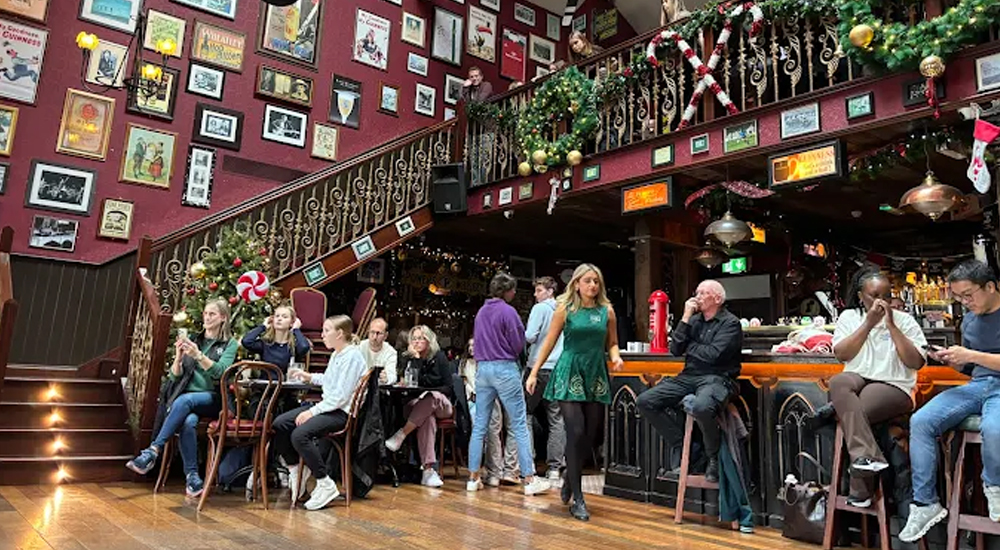 Your Christmas party takes place in the stunning, historic Merchants Arch Bar, a Dublin landmark overlooking the iconic River Liffey and Ha'penny Bridge. For the festive season, this beautiful 19th-century venue is transformed into a Christmas wonderland, adorned with twinkling lights and festive garlands. With reserved seating for your group, you’ll have the perfect cozy spot to enjoy the entertainment and soak up the magical atmosphere of your Christmas event.